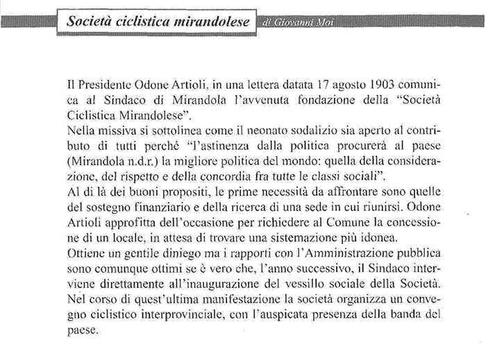 La Società Ciclistica Mirandolese è stata fondata il 9 Luglio 1903.
