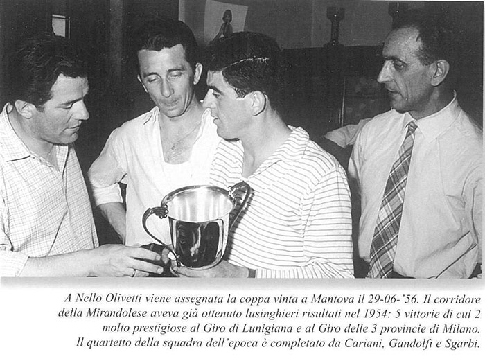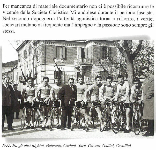Nel secondo dopoguerra la Società Ciclistica Mirandolese si stabilì nell'attuale sede in centro storico di Mirandola, città natale di Giovanni Pico, e salì alle cronache per merito dell'azzurro Giulio Valeriani che nel mondiale del 1949 fu primo degli Italiani, poi con lo sprinter Nelio Olivetti gran mattatore e vincitore di tante gare fra cui alcune internazionali.