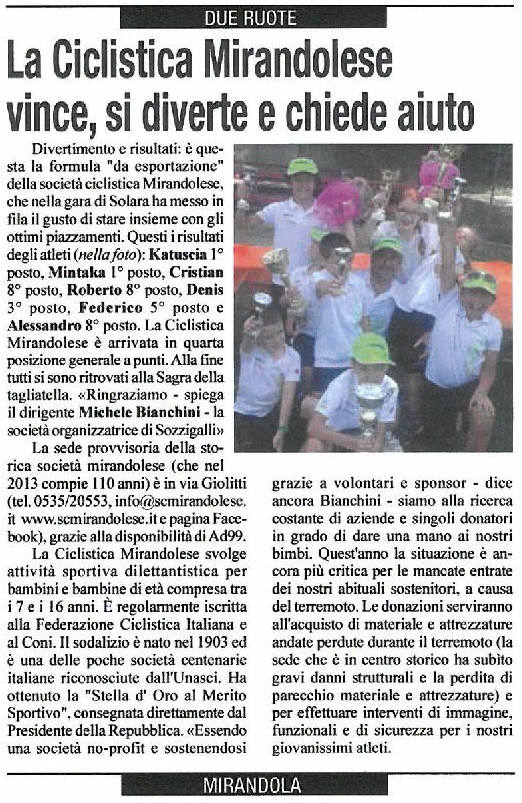 Associazione Sportiva Dilettantistica - Via Tabacchi, 7 - 41037 MIRANDOLA (MO) Tel. 0535.20553 - P.I. 01956380362e-mail: info@scmirandolese.it
