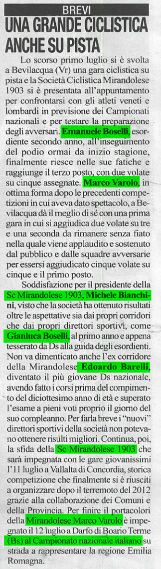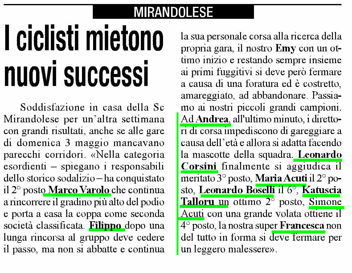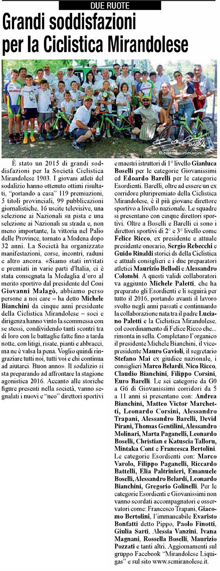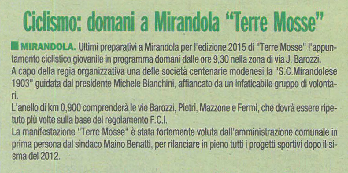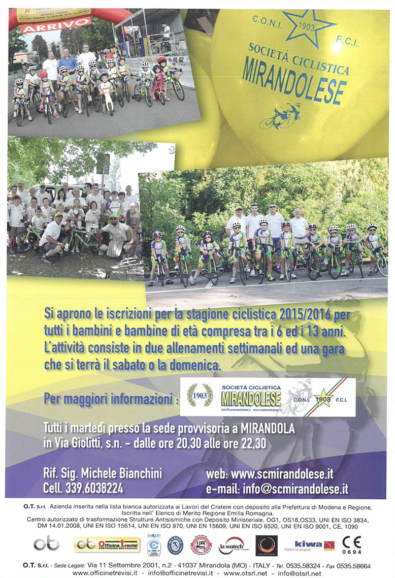 Associazione Sportiva Dilettantistica - Via Tabacchi, 7 - 41037 MIRANDOLA (MO) Tel. 0535.20553 - P.I. 01956380362e-mail: info@scmirandolese.it